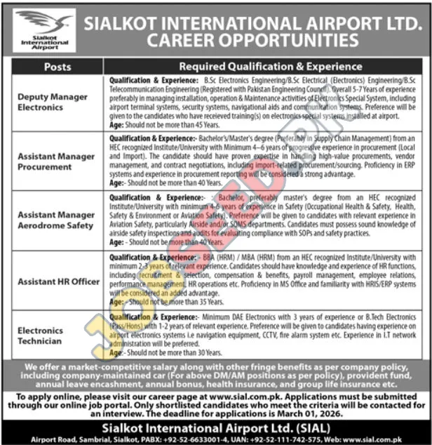 - Application Process: Interested candidates are invited to visit the official career page of Sialkot International Airport Ltd. (SIAL) at www.sial.com.pk to submit their applications online.