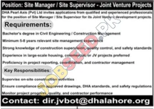 Site Manager / Supervisor for Joint Venture Projects - DHA Pearl Axis