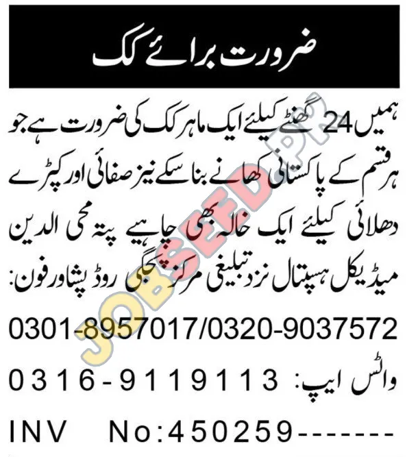 Skilled Cook & Housekeeper Vacancies in Peshawar