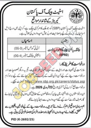 Explore exciting career opportunities at the State Bank of Pakistan (SBP) in Karachi. SBP is hiring for Digital Banking Officer and IT Governance Officer positions within the Banking Policy and Regulation Department (BPRD). These public sector roles offer professional growth for individuals with expertise in digital finance and IT governance. Apply online for these latest government jobs in Pakistan before the closing date.