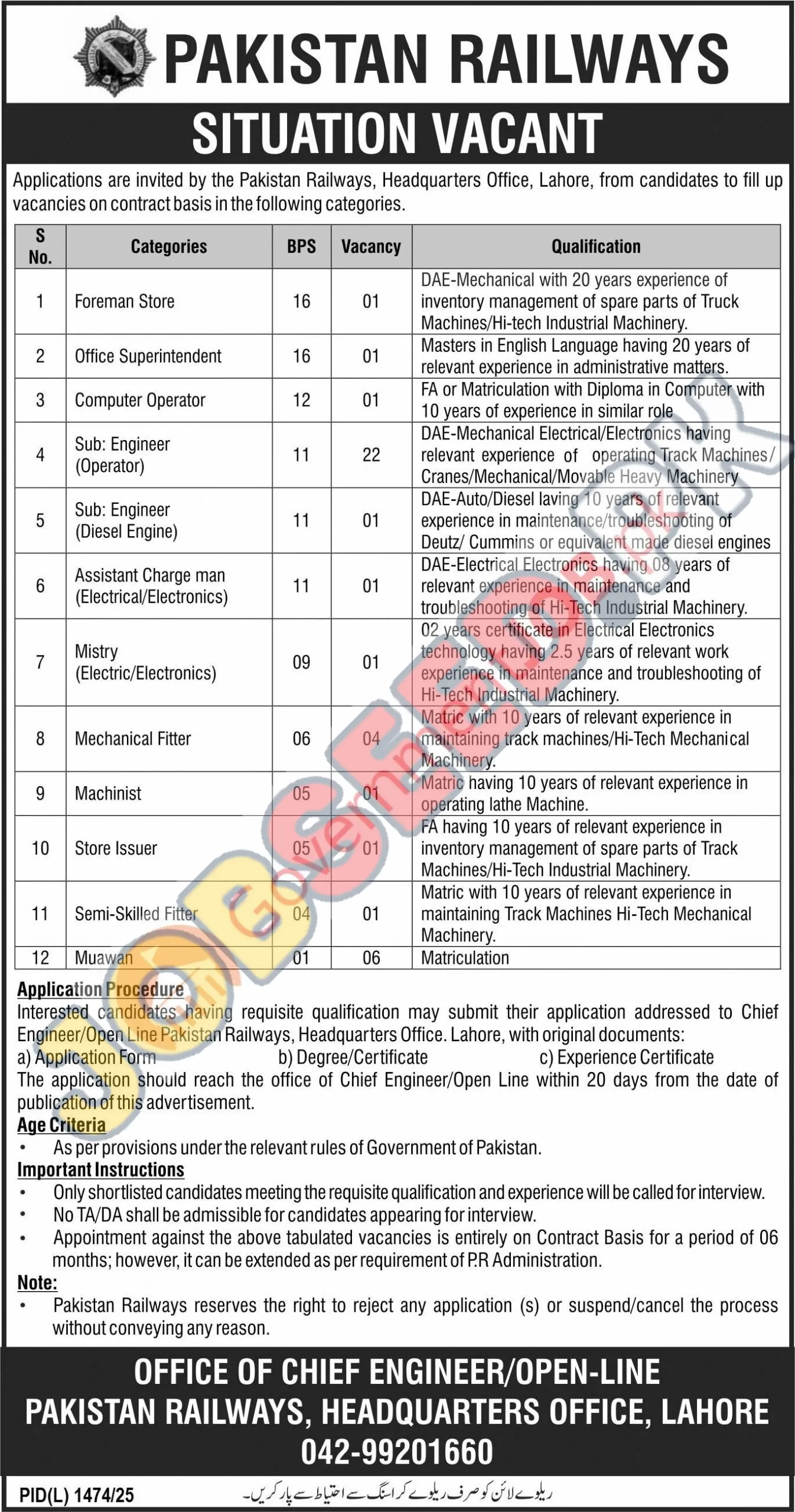 These positions are critical to maintaining the efficiency and reliability of Pakistan Railways. If you meet the qualifications and are ready for a challenging role, we encourage you to apply.