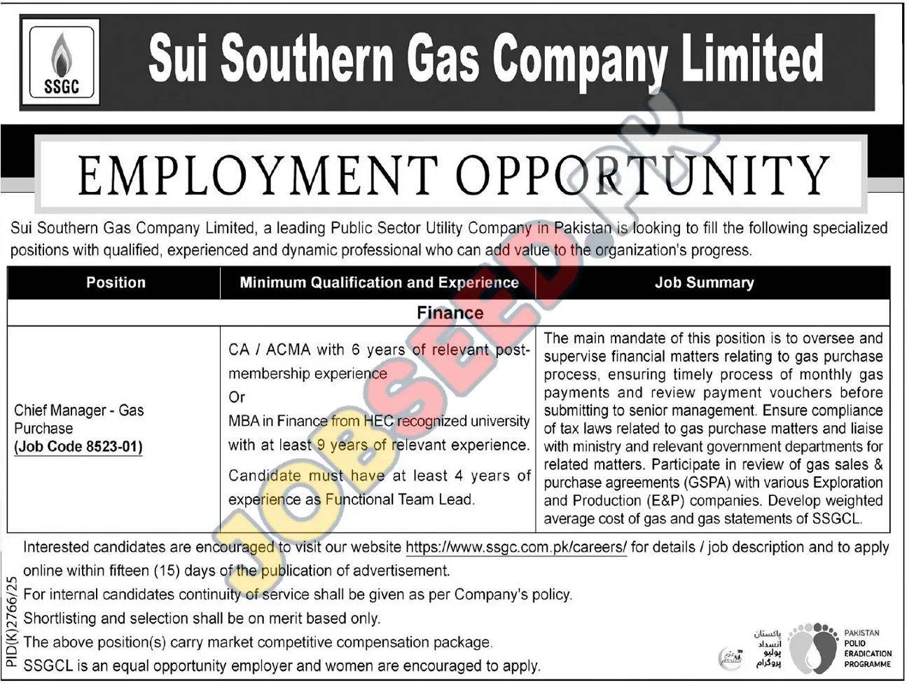 - Visit the Official Website: Interested candidates are strongly encouraged to visit the Sui Southern Gas Company Limited (SSGCL) official careers portal at https://www.ssgc.com.pk/careers/ for comprehensive details regarding the job description and the application procedure.