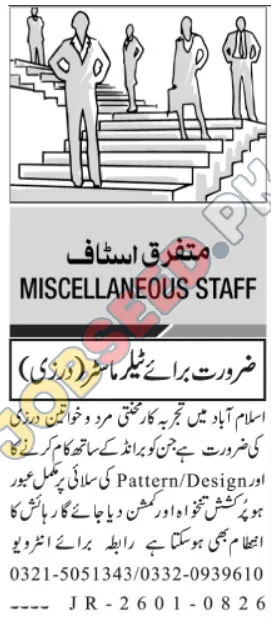 Tailor Master Needed in Islamabad - Excellent Salary Offered