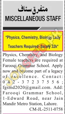 Farooqi Grammar School is seeking passionate and qualified teachers to join their esteemed faculty. This is an excellent opportunity to contribute to a legacy of excellence in education, teaching Physics, Chemistry and Biology to young minds. If you are a dedicated educator with a strong command of your subject and a passion for helping students succeed, we encourage you to apply.
