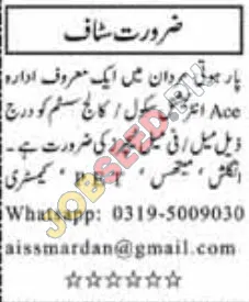 Ace International School & College System, a well-reputed educational institution located in Mardan, is seeking qualified and dedicated teachers to join their team. This is an excellent opportunity for educators passionate about shaping young minds and contributing to a thriving academic environment. The positions are available for both male and female candidates.