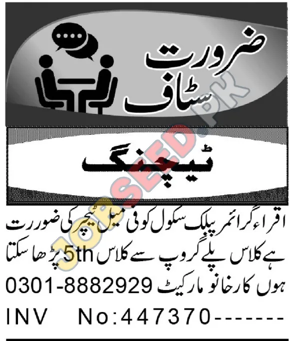 Join Iqra Grammar Public School and become a valuable member of a dynamic educational environment. This is a chance to make a real difference in students' lives while advancing your own career in teaching.