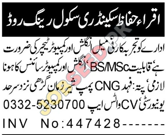 | Job Hiring Organization: | Iqra Huffaz Secondary School |