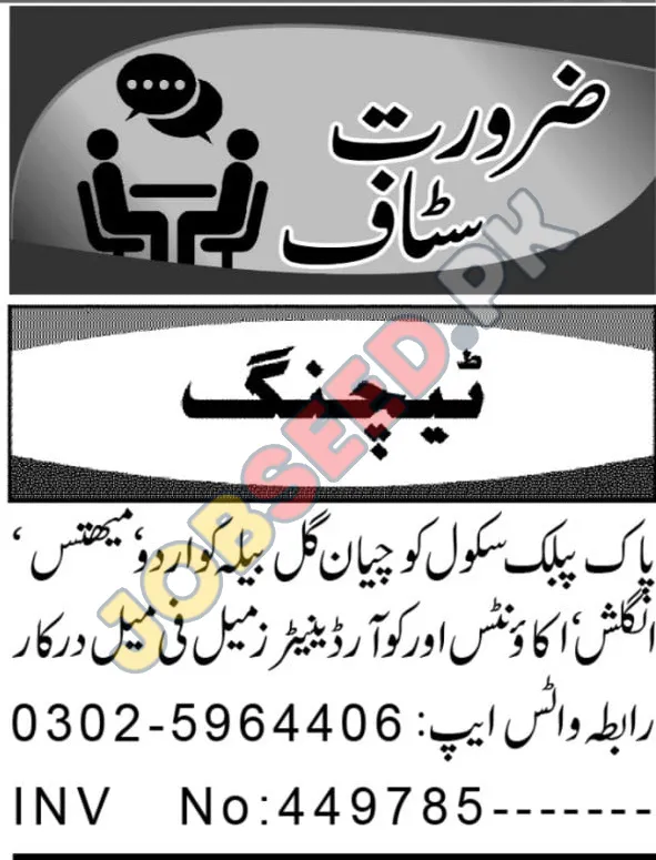 Pak Public School is hiring teachers for English, Urdu, Maths, and a Coordinator for their school in Chian, Bhela, providing an excellent career opportunity. This is an incredible chance for you to join as a teacher! This private sector school is offering a comprehensive opportunity for professional growth and competitive employment.