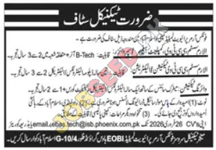 Phoenix Armored Private Limited, a private sector entity, is currently seeking skilled Technical Staff in Islamabad. This is a great career opportunity for individuals with experience in the electrical and technical fields. The company is offering competitive salaries and benefits, making it an excellent choice for those seeking professional growth. Explore the latest job openings and submit your application to join a leading private sector company! Explore these hiring with competitive benefits.