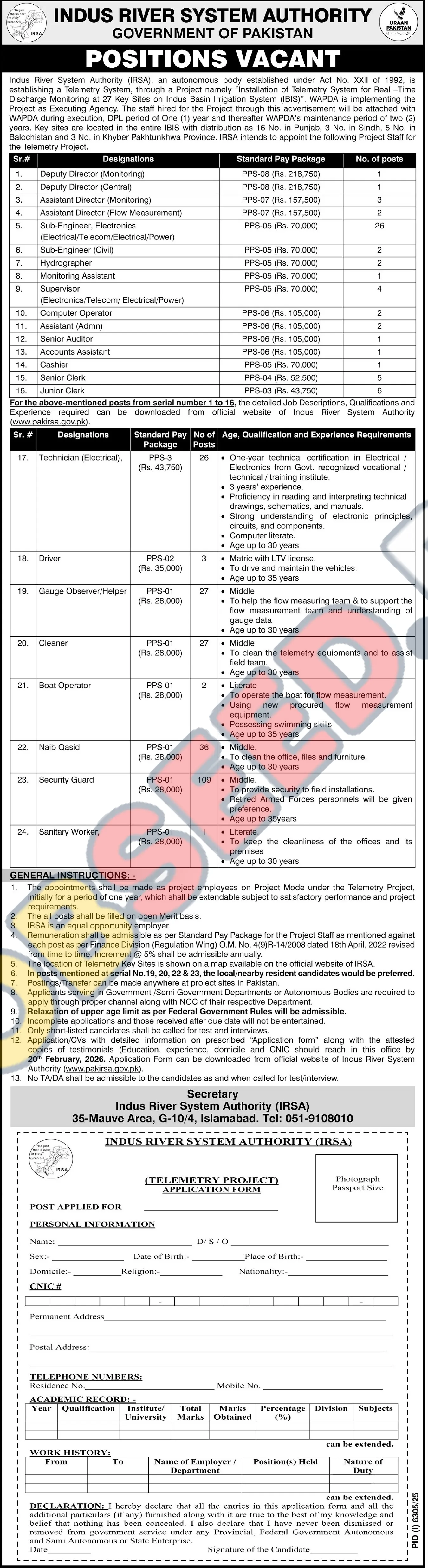 | Job Hiring Organization: | Indus River System Authority (IRSA) |