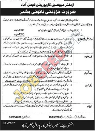 Temporary Legal Assistant Vacancies in Faisalabad Municipal Corporation
