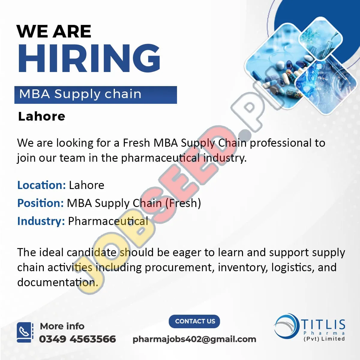 TITLIS Pharma (Pvt) Limited, Lahore invites applications from eligible candidates for the post of MBA Supply Chain Professional as per advertisement of 04 December, 2025, published in Image Advertisement. BA educational qualification will be preferred.
