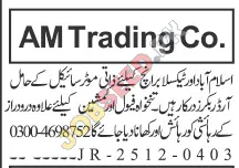 Trading Company, Islamabad Islamabad Pakistan invites applications from eligible candidates for the post of Order Booker as per advertisement of 15 December, 2025, published in Jang Newspaper. Matric educational qualification will be preferred.