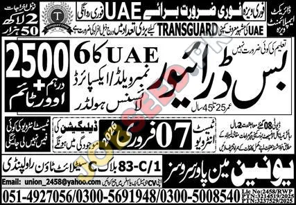 Embark on a rewarding career as a Bus Driver in the United Arab Emirates with Transguard, a leading private sector company. We are actively seeking experienced and licensed bus drivers for immediate placement. This is an excellent opportunity for individuals looking for overseas employment with a reputable organization. Benefit from a generous salary package, including accommodation and other allowances. If you possess a valid bus driving license and a commitment to safety, we encourage you to apply for these sought-after government-approved job openings. Explore exciting career development prospects in the UAE. Explore these Driver vacancies Rawalpindi with competitive benefits.