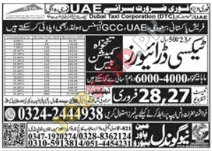 Dubai Taxi Corporation (DTC) is urgently seeking skilled and experienced drivers for immediate deployment in the UAE. This is a prime opportunity for Pakistani nationals to secure a stable driving career with competitive earnings. We are looking for individuals with a valid GCC/UAE/Saudi driving license who can operate taxis efficiently. Successful candidates will benefit from a lucrative commission structure, with monthly earnings ranging from 4000 to 6000 AED. This government sector role offers excellent career prospects and a chance to work with a leading transportation authority in Dubai. Explore these latest job openings and embark on a rewarding professional journey.