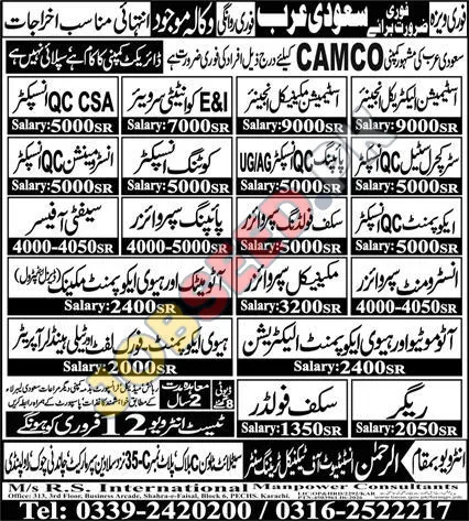 - Company: M/s R.S. International Manpower Consultants is the authorized recruitment agency for CAMCO in Saudi Arabia.