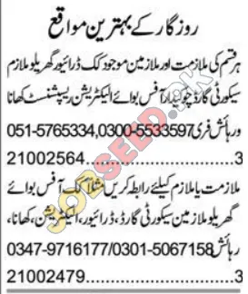 This advertisement highlights urgent vacancies for experienced drivers and household staff within a reputable private sector organization. Ideal candidates will possess strong driving skills and proven experience in domestic support roles. The company is dedicated to offering excellent employment terms and fostering employee development. These positions represent a significant opportunity for career advancement and stable employment.