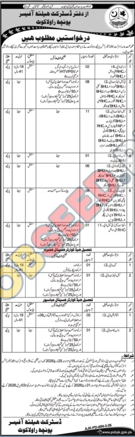 | Job Hiring Organization: | District Health Department, Poonch Rawalakot |
