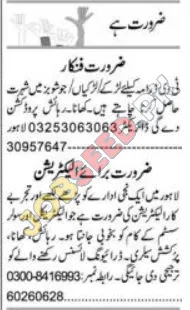 Urgent Hiring: Experienced Electricians and TV Drama Assistants in Lahore