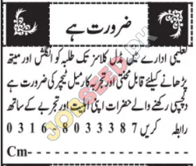 Urgent Teaching Vacancies in Lahore