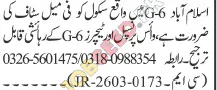 Urgent Hiring: Female Teachers and Vice Principal for G-6 School in Islamabad