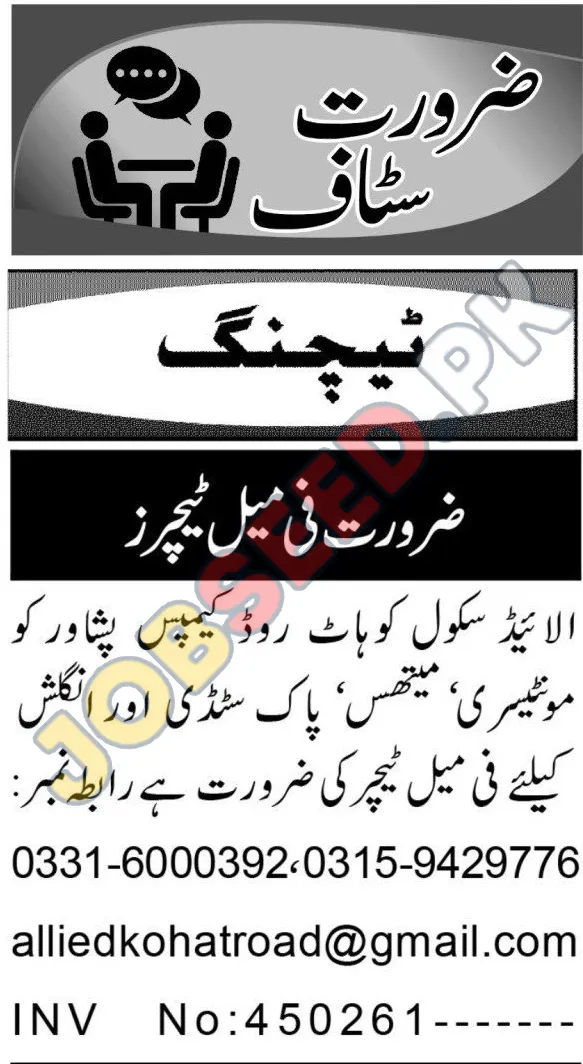 Allied School, Kohat Road Campus, is announcing urgent vacancies for female teachers. This private sector educational institution is looking for experienced educators specializing in Montessori, Middle School subjects, Pakistan Studies, and English. Explore these Education jobs in Kohat Road with competitive benefits. Ideal candidates will possess strong pedagogical skills and a commitment to student development. This is a fantastic opportunity for individuals seeking to contribute to a reputable school and build a lasting career in education. Explore these new teaching job openings and apply to become part of our growing academic community.