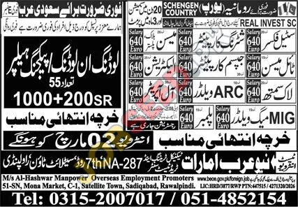 | Job Hiring Organization: | M/s Al-Hashwar Manpower Overseas Employment Promoters |