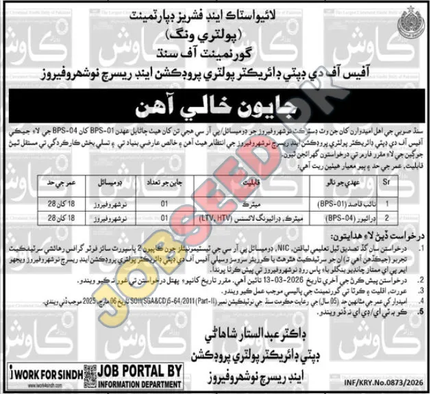 - Submission Method: Applications should be sent to the office of the Deputy Director, Poultry Production, Noushæro Feroze.