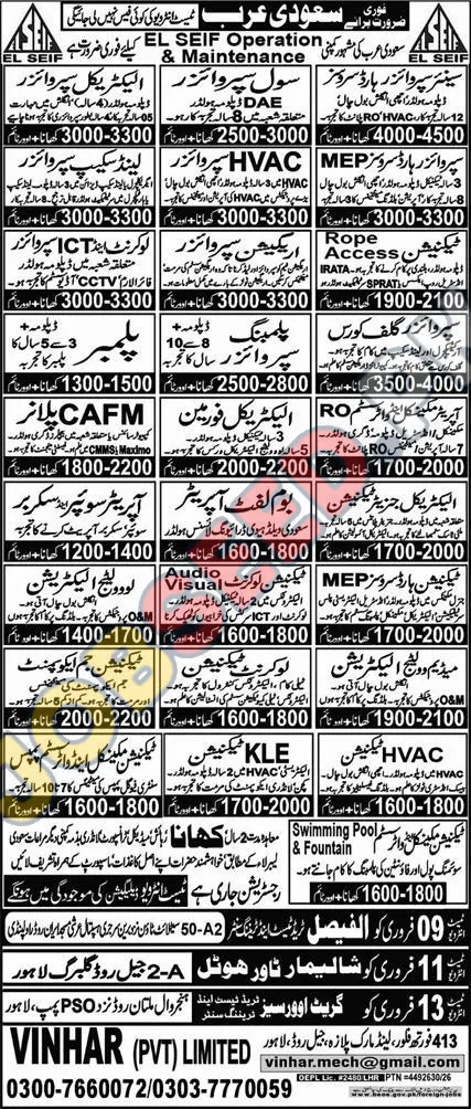 - MEP Supervisor: Requires 3-8 years of experience, DAE/Diploma. Salary: 3000-3300 SAR + food.