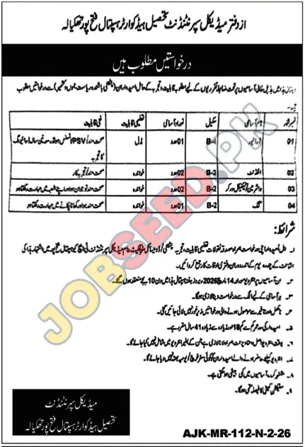 Urgent Hiring: Medical Technicians and Support Staff at Tehsil Headquarters Hospital