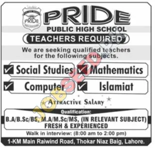 Urgent Hiring: Qualified Teachers for Pride Public High School in Lahore