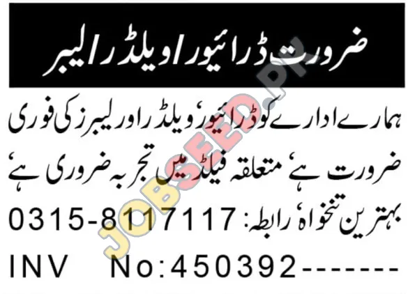 A prominent private sector entity is announcing immediate vacancies for skilled professionals. We are looking for dedicated individuals to fill crucial roles as Drivers and Welders. This is an excellent chance to secure a stable job with attractive compensation and benefits. Our organization is committed to professional development and providing a conducive work environment.