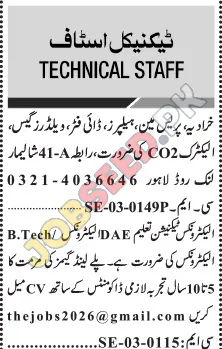 Latest Technical Staff Openings in Lahore