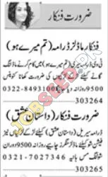 - For Artist (Dramatist -istan-e-Ishq) Position: