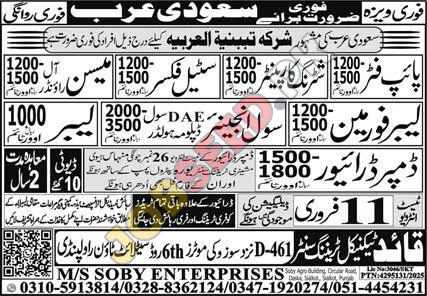 M/S Soby Enterprises is announcing immediate overseas employment opportunities in Saudi Arabia for skilled professionals. Successful candidates will benefit from these public sector jobs. This private sector recruitment drive focuses on filling critical roles within the transportation and construction industries. We are seeking dedicated individuals to join reputable companies in Saudi Arabia, offering competitive salaries and a chance for significant career advancement. These government-approved vacancies are ideal for those looking to secure stable, long-term employment abroad.