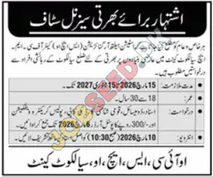 This advertisement announces immediate openings for General Staff within a government organization in Pakistan. The recruitment drive focuses on attracting motivated individuals for various roles, emphasizing a commitment to public service and career development. Explore stable government employment and contribute to the nation's progress. We are seeking candidates who are eager to learn and grow within a structured professional environment. This is an excellent opportunity for individuals looking for long-term career prospects in the public sector.