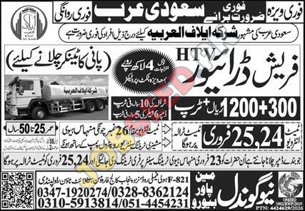 Saudi Arabia's leading recruitment agency, Al Arab, is urgently seeking skilled HTV Drivers and Water Tanker Mechanics for immediate deployment. This is a fantastic opportunity for individuals looking for overseas employment with competitive salaries and benefits. We are prioritizing candidates with valid driving licenses and mechanical expertise for these high-demand roles. Explore exciting career prospects in the Kingdom of Saudi Arabia and secure your future with a reputable employer. This private sector opportunity offers significant earning potential, making it an attractive choice for experienced professionals.