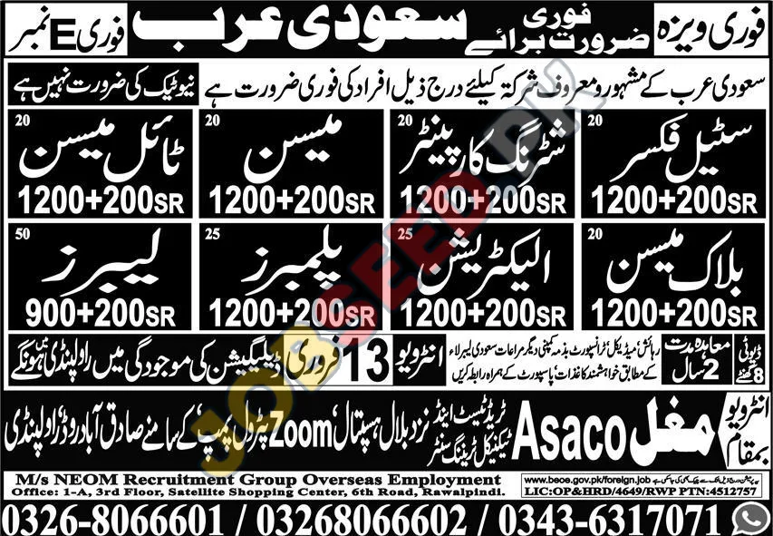 NEOM Recruitment Group Overseas Employment is facilitating immediate hiring for a reputable company in Saudi Arabia, seeking skilled professionals for various trade positions. This position represents excellent Latest NEOM Recruitment Group Overseas Employment careers in the region. This is an excellent opportunity for individuals looking to advance their careers with competitive compensation and overseas employment benefits. The company is committed to providing a stable and professional work environment.