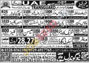 | 1 | Security Guard | Matric | UAE | 825 | 28-27 | ||