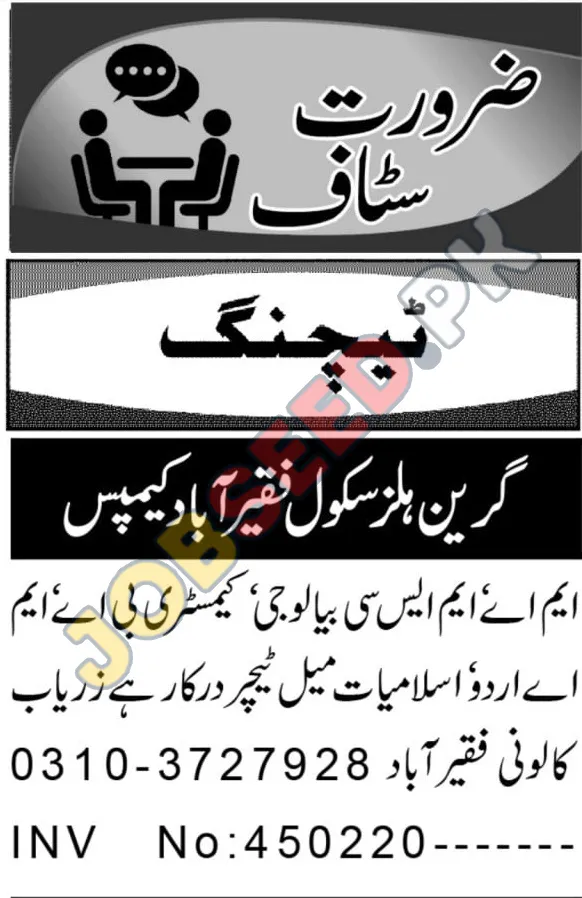 Discover immediate teaching vacancies at Green Hills School, located in the educational hub of Faisalabad. This private educational organization is dedicated to fostering academic excellence and is currently recruiting qualified teachers for various subjects including Urdu, Islamic Studies, Chemistry, Biology, and Mathematics. We are looking for educators passionate about shaping young minds and contributing to a dynamic learning environment. Successful candidates will benefit from these career opportunities. This is an excellent chance for individuals seeking stable employment and professional growth within the education sector. Explore our latest job openings for experienced and aspiring teachers.