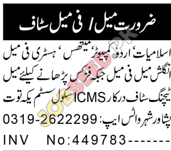 Urgent Teaching Staff Vacancies at ICMS School System, Peshawar
