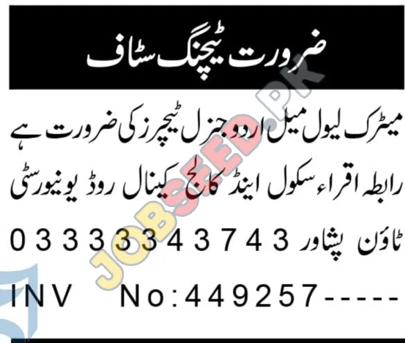 Discover exciting career opportunities in education! R.A. College School & University is actively seeking dedicated General Teachers to join their esteemed faculty. This is a prime chance for individuals with a Matriculation qualification to contribute to student development and secure a rewarding teaching position. We are committed to fostering a supportive environment for educators, offering professional growth and a competitive salary package. Explore the latest government teaching jobs in Peshawar and advance your career in a reputable educational institution.
