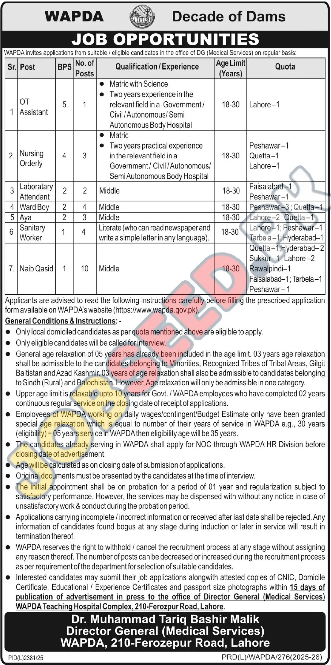 - 📩 Send applications to: Office of the Director General (Medical Services), WAPDA Teaching Hospital Complex, 210-Ferozepur Road, Lahore.