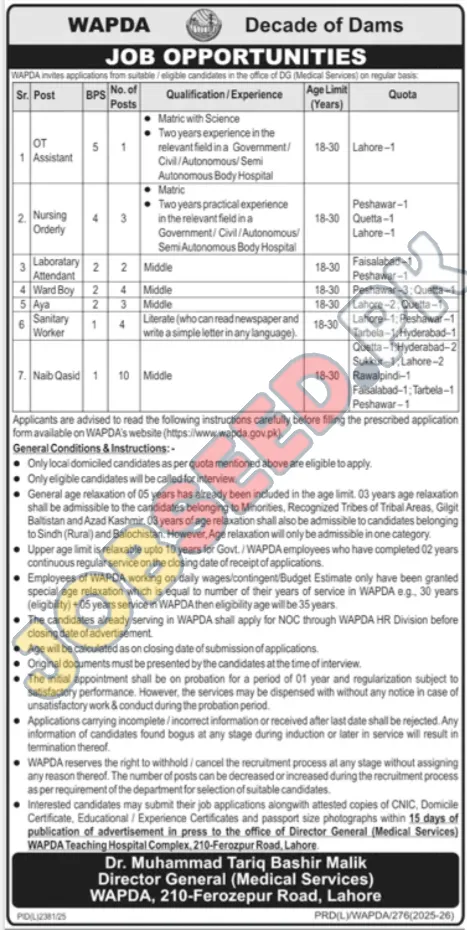 | Advertisement Source: | PRD(L)/WAPDA/276(202 |
