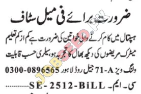 An opportunity awaits for female staff to contribute to a hospital setting in Lahore. The position requires individuals with a minimum educational qualification of Matric and experience in patient care, ensuring appropriate salary according to experience and skillset. This role is ideal for those seeking to work in a healthcare environment and contribute to patient well-being.